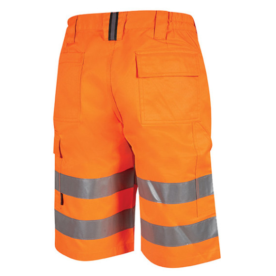 Pantaloncini realizzati in resistente tessuto cotone/poliestere 50/50, dotati di chiusura centrale con zip e bottone gommato antigraffio per un'ottima tenuta e una durata nel tempo. Rinforzi nella zona lombare, grazie al carré posteriore accentuato e triple cuciture. Inserti elasticizzati nel girovita per garantire totale libertà di movimento. 2 ampie tasche anteriori, 2 tasche posteriori con patta e velcro, 1 tasca laterale multifunzionale e 1 tasca porta-metro. Nastro reflex posizionato sul passante tubolare posteriore per migliore visibilità. Su ordinazione da S a 5XL.CE EN ISO 13688, EN ISO 20471.