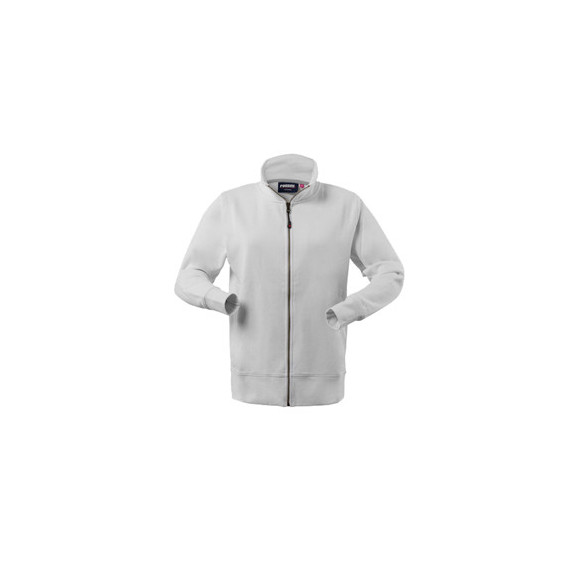 Felpa in cotone (80%) e PL (20%) da donna con chiusura anteriore con cerniera centrale, collo alto, parasudore di colore a contrasto interno al collo, polsi e fascia girovita in maglia elastica, due tasche inferiori a filetto. Su ordinazione tutte le taglie da XS a XXL.