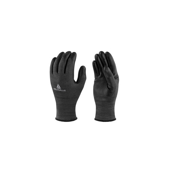 Guanto a maglia antistatico. Fibra alte prestazioni DELTAnocut® e fibre di carbonio. Spalmatura poliuretano senza solventi su palmo e punta della dita. Finezza 18. Ideale per l'industria automobilistica. Non lascia traccia sugli oggetti manipolati. Ottima destrezza e finezza del lavoro. Elevata dissipazione elettrostatica per ridurre il rischio di esplosione. Categoria DPI: 2. Certificazione CE. Conformità alle norme: EN388:2016+A1:2018, EN407:2020, EN16350:2014 e ANSI ISEA (US American National Standards Institute) 105