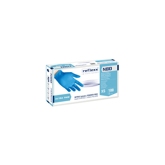 Guanti in nitrile N80 - ultrasottili - taglia XS - azzurro - Reflexx - conf. 100 pezzi