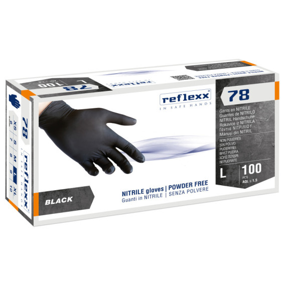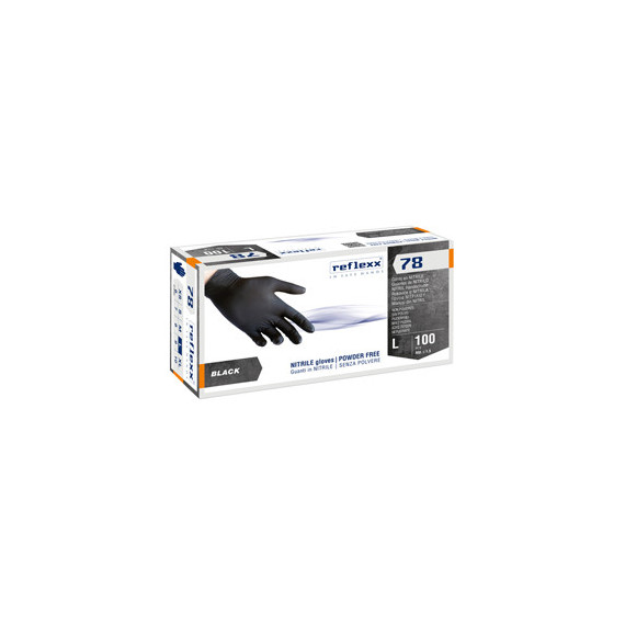 Guanti in nitrile R78 - senza polvere - taglia L - nero - Reflexx - conf. 100 pezzi