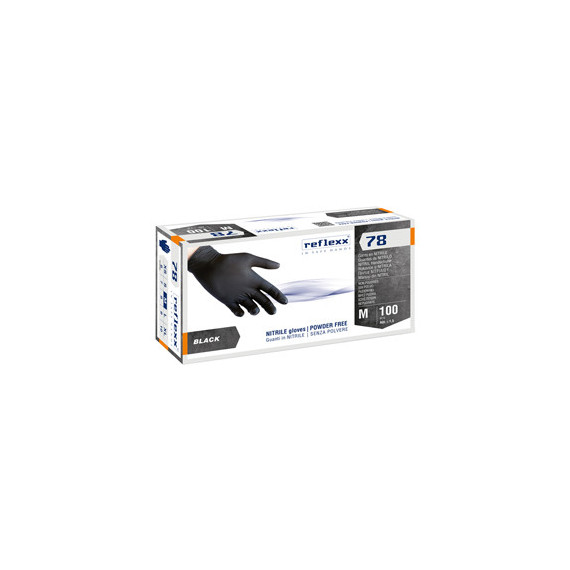 Guanti in nitrile R78 - senza polvere - taglia M - nero - Reflexx - conf. 100 pezzi