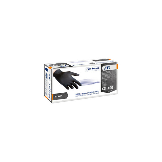 Guanti in nitrile R78 - senza polvere - taglia XS - nero - Reflexx - conf. 100 pezzi