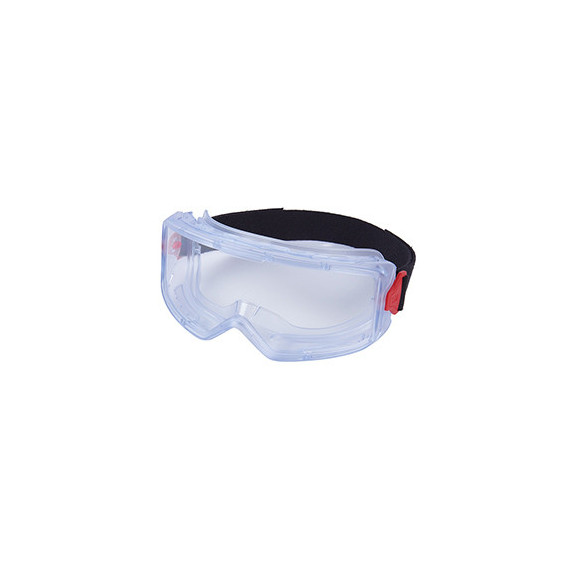 Occhiali a mascherina protettivi con struttura in PVC trasparente, con lenti avvolgenti per un migliore campo visivo e nasello scanalato. Indossabili con occhiali da vista. Ventilazione indiretta per una migliore circolazione dell'aria e prestazioni anti-appannamento. Classificazione 3 (protezione dalle gocce), 4 (protezione dalle particelle di grandi dimensioni) e 6 (protezione dai flussi di liquido).