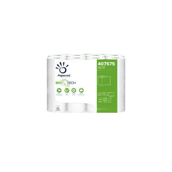 Carta igienica classica Bio Tech - 180 strappi - 2 veli - 19,80 mt - Papernet - conf. 24 rotoli