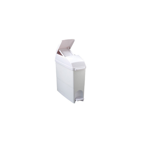 Contenitore igienico per toilette con struttura in polipropilene. Apertura a bocca di lupo con pedale. Coperchio blocca sacco. Dimensioni: L 15 x P42 x H47cm - Capacità 18 Litri. Pulizia periodica da effettuare con un panno morbido e non abrasivo, imbevuto d’acqua. Detergenti che contengono solventi possono danneggiare il materiale.