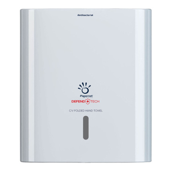 Il dispenser Defend Tech bianco per asciugamani piegati C e V permette una facile dispensazione dei fogli grazie anche ad un pratico adattatore e le sue dimensioni contenute lo rendono ideale anche per spazi piccoli.