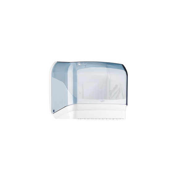 Dispenser asciugamani in rotolo/fogli - 30x19,5x25,1 cm - plastica - bianco/azzurro trasparente - Mar Plast