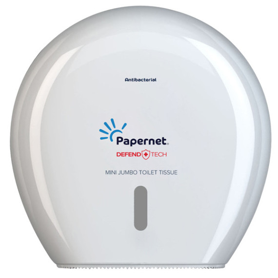 Dispenser carta igienica Defend Tech rotolo Mini Jumbo - 24,9 x 25,7 x 14,8 cm - rotolo diametro 23 cm - bianco - Papern
