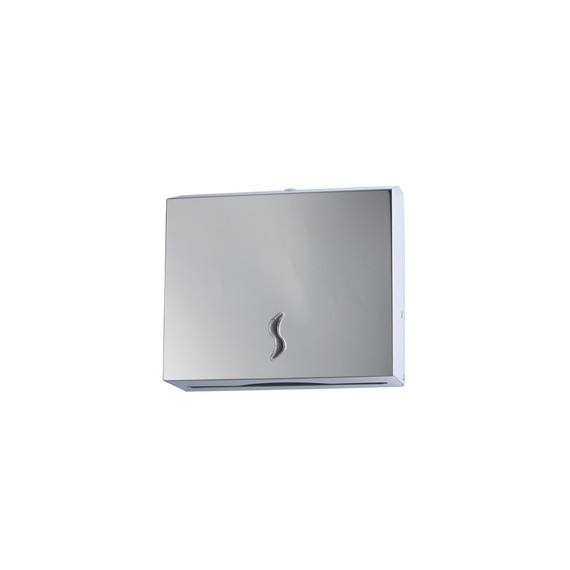 Dispenser in acciaio inox brillante aisi 430. Adatto per asciugamani piegati a C o a Z. Capacità 200 fogli.Dimensioni: l28 x p10,2 x h26,5cm. Effettuare una periodica manutenzione per prevenire l’ossidazione del materiale utilizzando una spugna non abrasiva e sciacquando con abbondante acqua, preferibilmente calda. Per prevenire la formazioni di macchie ed aloni è consigliabile asciugare la superficie con uno straccio di cotone. Ogni 10 o 20 pulizie ordinarie, è consigliabile utilizzare prodotti specifici per inox, in spray o crema, non aggressivi.Viteria inox inclusa. Necessita di 2 fori per l'affissione al muro distanti 23cm.