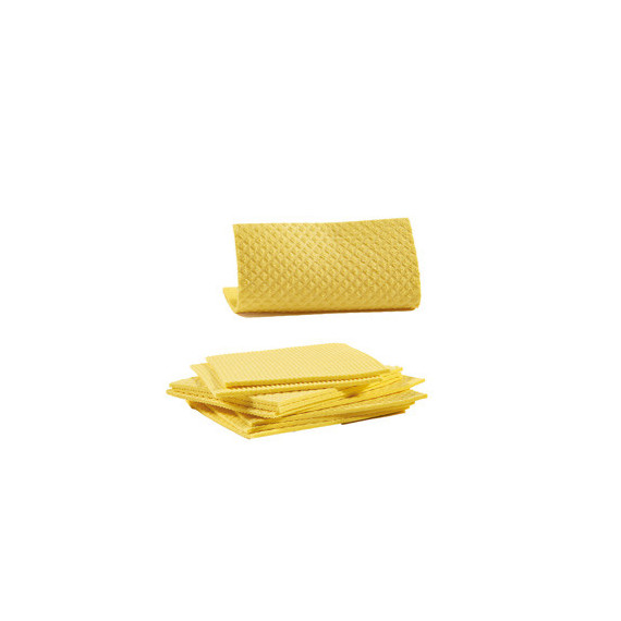 Panno in spugna di cellulosa e cotone. Dimensioni: 18x20cm. In confezione da 10 pannospugna colore giallo.