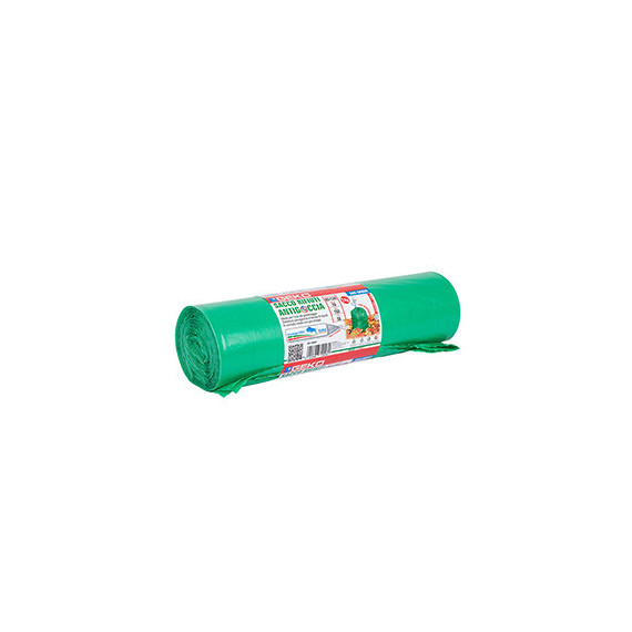 Sacchi professionali da giardino robusti e funzionali con saldatura laterale antigoccia e dotato di uno speciale laccio di chiusura che facilita il trasporto del sacco una volta pieno. Indicato per lavori di giardinaggio, sfalcio d'erba e residui di potatura. Tecnologia Coex brevettata con fi lm in polietilene bassa densità formato da 3 strati per maggiore resistenza. Dimensioni: 80x120cm. Capacità: 50L. 56my. Colore: verde.