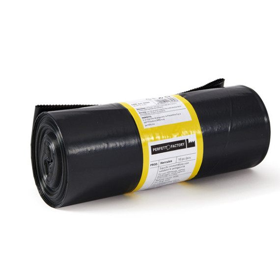 Sacchi per rifiuti Hercules - 90x120 cm - 150 L - 65 micron - nero - PerfettoFactory - rotolo da 10 sacchetti