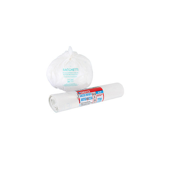 Sacchi per rifiuti organici Sac Bio - 70 x 110cm - 120 L - 12 micron - bianco - Geko - rotolo da 10 sacchetti