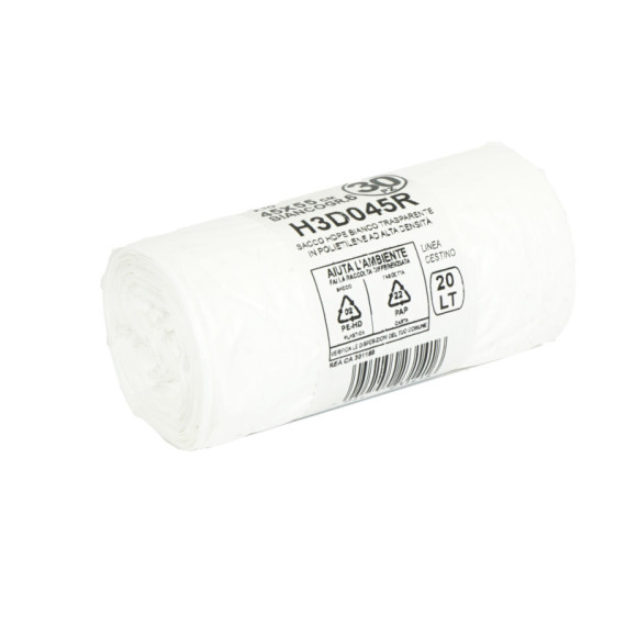 Sacco rifiuti - HDPE - 45 x 55 cm - 20 L - 15my - bianco - Bio Extrusion - conf. 30 pezzi