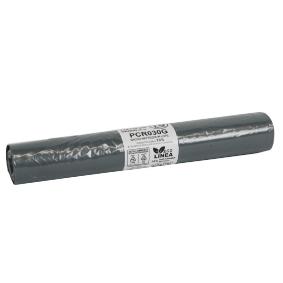 Sacco rifiuti - PCR - 72 x 110 cm - 110 L - 30 gr - grigio -Bio Extrusion - conf. 10 pezzi