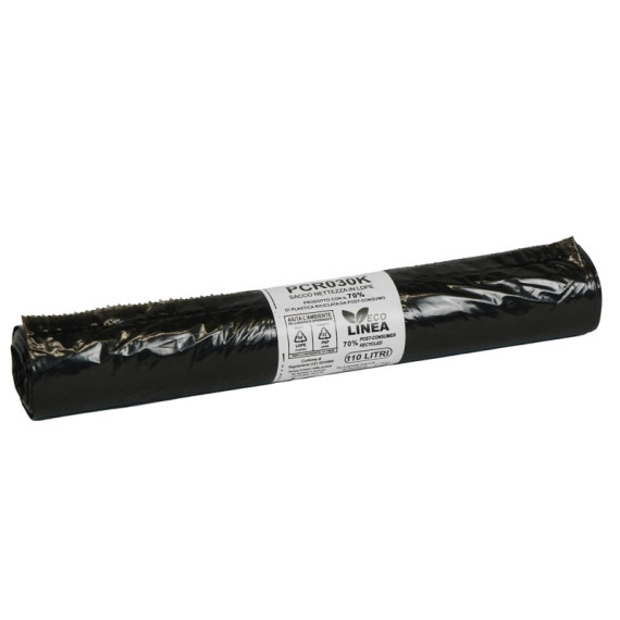 Sacco rifiuti - PCR - 72 x 110 cm - 110 L - 30 gr - nero -Bio Extrusion - conf. 10 pezzi
