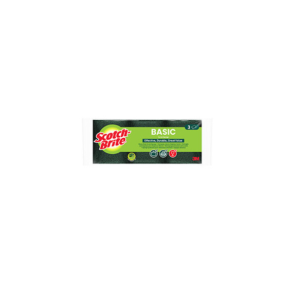 Spugna abrasiva Basic - 14,2x2,4x11,5 cm - giallo/verde - Scotch-Brite - conf. 3 pezzi