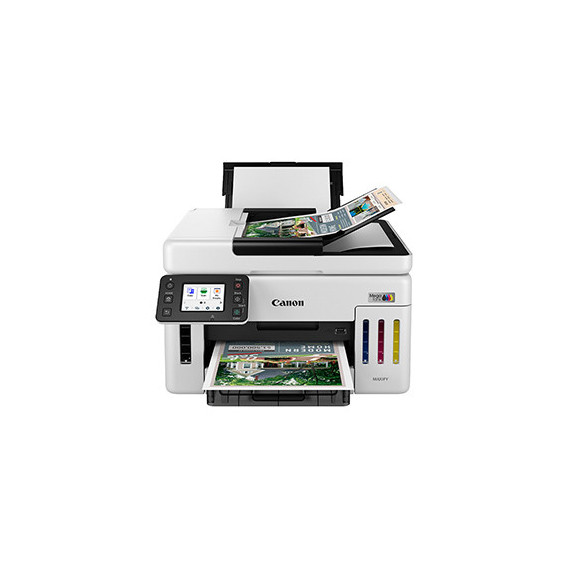 Canon Multifunzione A4 a colore Inkjet MAXIFY GX6150 INCHIOSTRI NELLA CONFEZIONE : SI, Nero (BK) da 6.000pg e Colori (C, M, Y) da 14.000pg Risparmia sui costi totali di stampa con la stampante inkjet 3 in 1 a colori ricaricabile MegaTank Canon MAXIFY GX6150. Con una resa di 14.000 pagine¹ da un set di flaconi di inchiostro a colori o fino a 6.000 pagine¹ da un flacone di inchiostro nero, manterrai bassi i costi legati alla stampa quotidiana ad alto volume. Stampa, scansiona e copia, connettiti al cloud, gestisci supporti diversi e goditi una sicurezza multilivello, utilizzando il pratico touch screen LCD orientabile a colori da 6,9cm. La stampante si integrerà nei tuoi flussi di lavoro aziendali, connettendosi all'app Canon PRINT, Apple AirPrint (iOS) e Mopria®4 (A ndroid) per garantire una stampa continua, 24 ore su 24, da qualsiasi luogo. - Business Ad inchiostro Stampa a colori - 600 x 1200 DPI - Colori di stampa: Nero, Ciano, Magenta, Giallo - A4 - Copia a colori Scansione a colori - Apple AirPrint, Canon iEasy-PhotoPrint, Mopria Print Service - Stampa diretta - Porta USB Wi-Fi Collegamento ethernet LAN