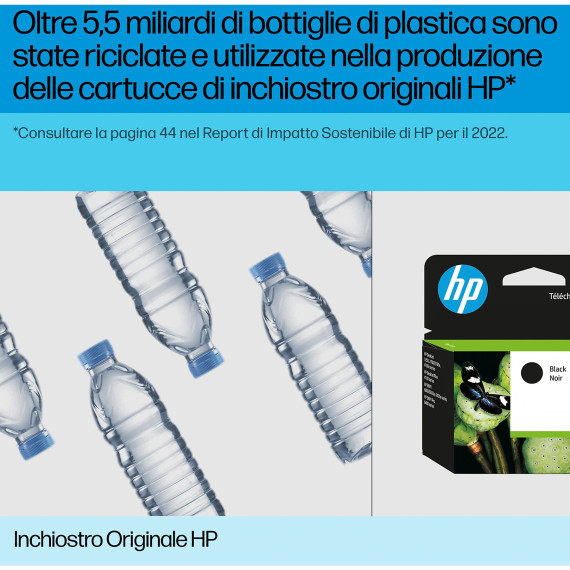 Attraverso il programma HP Planet Partners è stato possibile riciclare 962 milioni di cartucce: un risultato straordinario. L'82% delle cartucce di inchiostro originali HP contiene plastica riciclata. Certificazione UL ECOLOGO® per l'impatto ambientale ridotto, ottenuta rispettando rigorosi criteri di tutela ambientale.