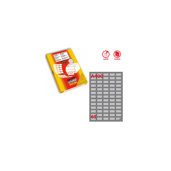 Etichette adesive A/400 - in carta - permanenti - 38,1 x 21,2 mm - 65 et/fg - 100 fogli - argento - angoli tondi - x las