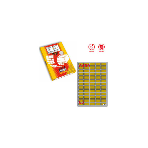 Etichette adesive A/400 - in carta - permanenti - 38,1 x 21,2 mm - 65 et/fg - 100 fogli - oro - angoli tondi - x laser -