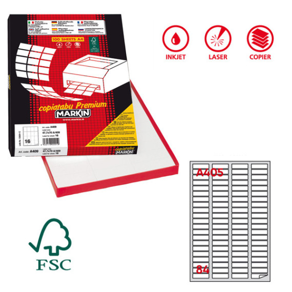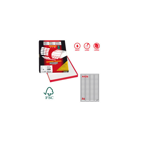 Etichette adesive A/405 - in carta - permanenti - 46 x 11,1 mm - 84 et/fg - 100 fogli - bianco - angoli tondi - Markin