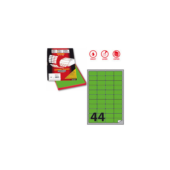 Etichette adesive A/406 - in carta - permanenti - 47,5 x 25,5 mm - 44 et/fg - 100 fogli - verde fluo - angoli tondi - Ma