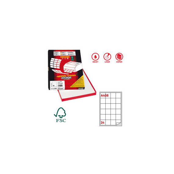 Etichette adesive A/408 - in carta - permanenti - 47,5 x 46,5 mm - 24 et/fg - 100 fogli - bianco - angoli tondi - Markin
