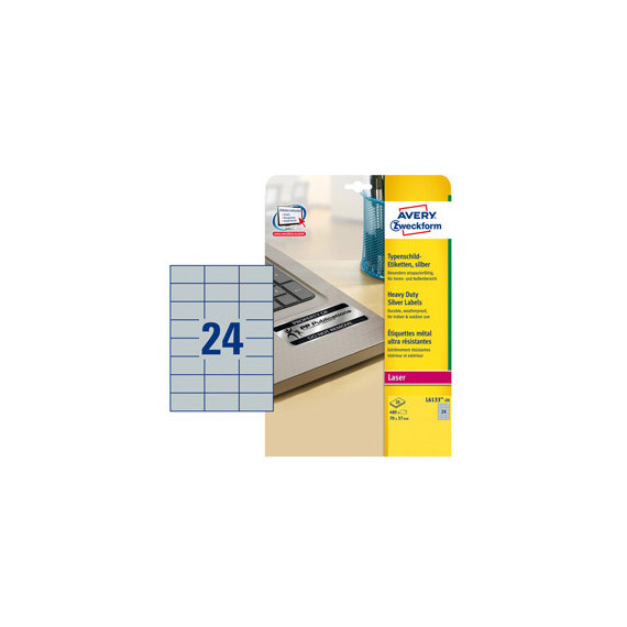 Etichette adesive L6133 - in poliestere - laser - permanenti - 70 x 37 mm - 24 et/fg - 20 fogli - argento - Avery