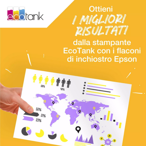 Gli inchiostri a pigmenti EcoTank della serie 113 assicurano stampe resistenti alle sbavature e agli evidenziatori. Non solo: con questi inchiostri affidabili e di qualità, testi e colori saranno nitidi e brillanti, per risultati eccezionali. Con un unico set di inchiostri puoi stampare migliaia di pagine, senza pensieri.