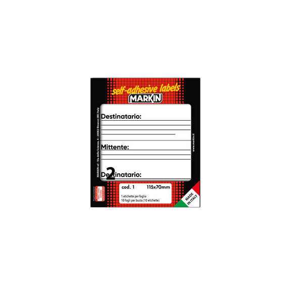Etichette adesive - in carta - permanenti - 115 x 70 mm - 2 et/fg - 10 fogli - mittente/destinatario - bianco - Markin