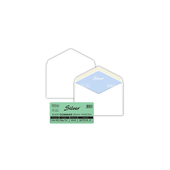Busta Busta Silver Matic FSC - senza finestra - gommata - 12 x 18 cm - 80 gr - bianco - Pigna Envelopes - conf. 25 pezz
