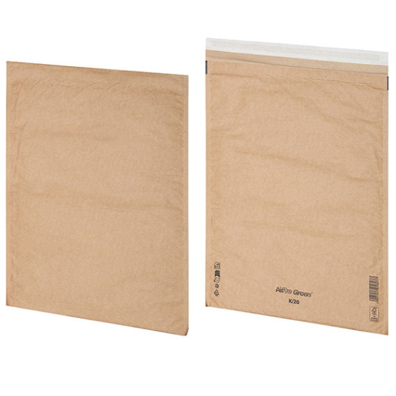 Sacchetti imbottiti ecologici senza plastica. La carta goffrata all'interno del sacchetto forma un forte strato di imbottitura che p rotegge i contenuti sensibili dalla pressione e dagli urti. Il destinatario potrà smaltirlo semplicemente nella raccolta differenziata della carta. Possono essere utilizzati in vari settori ed industrie, ideali per proteggere oggetti delicati, dalla pressione e da gli urti. La soluzione perfetta per spedire CD/DVD, libri, souvenir, documenti, parti elettroniche, gioielli, campioni e molto altro. Formato esterno: 370x470mm Formato interno: 350x470mm Materiale: Carta Kraft Riciclato Strato esterno e interno: Carta 75gr/mq Strato Intermedio: Goffrato 100 gr/mq Spessore Prodotto: 7 mm se non compresso chiusura laterale: 10 mm incollata ai lati Chiusura Patella: Strip (hot-melt) Colore: Avana Resistenza allo Scoppio (DIN EN ISO 2758):680 kPa