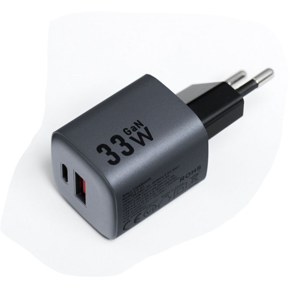 Caricabatterie da muro 2 porte USB-A e USB-C 3A F-Energy 33W GaN – USB-C PD + USB-A QC 4.0 3A grigio type-c caricatore Quick Charge