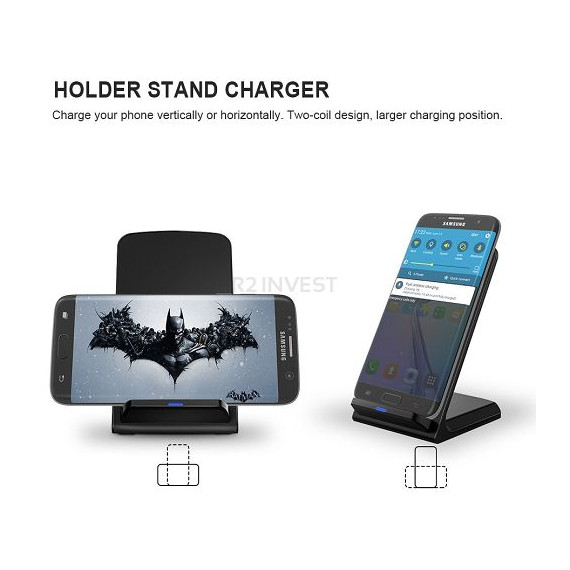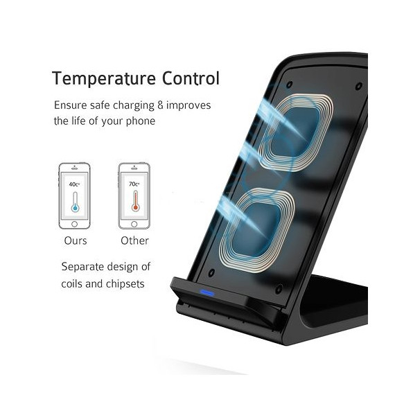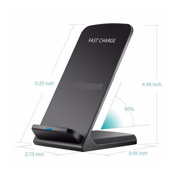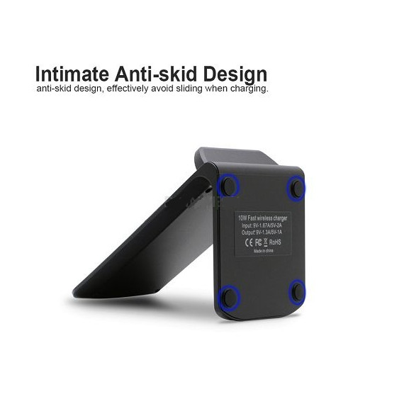 Caricatore wireless Q800 nero 10W ricarica veloce, stazione di ricarica Qi Ricarica Base per smartphone, orizzontale e verticale