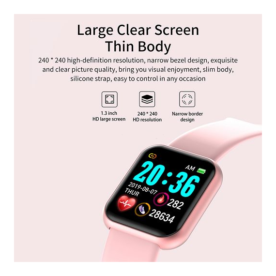 Orologio Smartwatch L18S rosa pink schermo 1.3" touchscreen bracciale attività - fitness - cardiofrequenzimetro Bluetooth